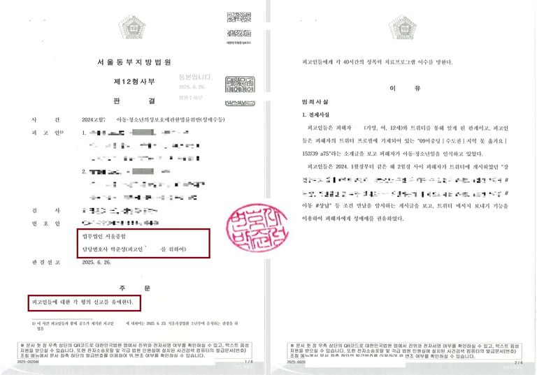 2025년 올해들어 선고유예 판결만 4번째 받게 되었는데, 특히 아청법 위반 사안에서 선고유예는 훨씬 이례적으로 나오기에 결과에 대한 보람은 배가 되었습니다.