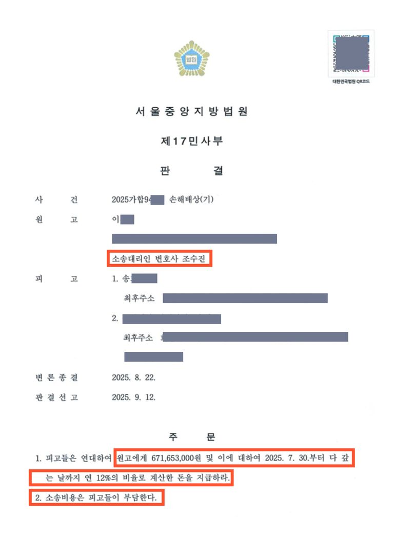 이로 인해 의뢰인은 투자금 약 6억원을 포함해 7억원에 가까운 손해를 입게 되었습니다. 부동산 관련 사건은 이번 사건처럼 단순히 약속 불이행을 넘어, 상대방의 의도적인 기망행위나 중대한 과실로 인해 발생하는 경우가 많습니다.
