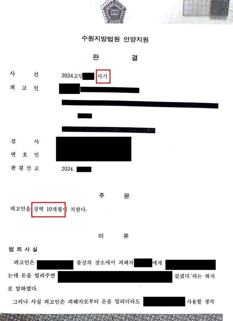 남자친구는 의뢰인에게 1원도 배상하지 못하였고 결국 1심에서 징역 10개월의 실형을 선고받고 법정구속되었습니다.