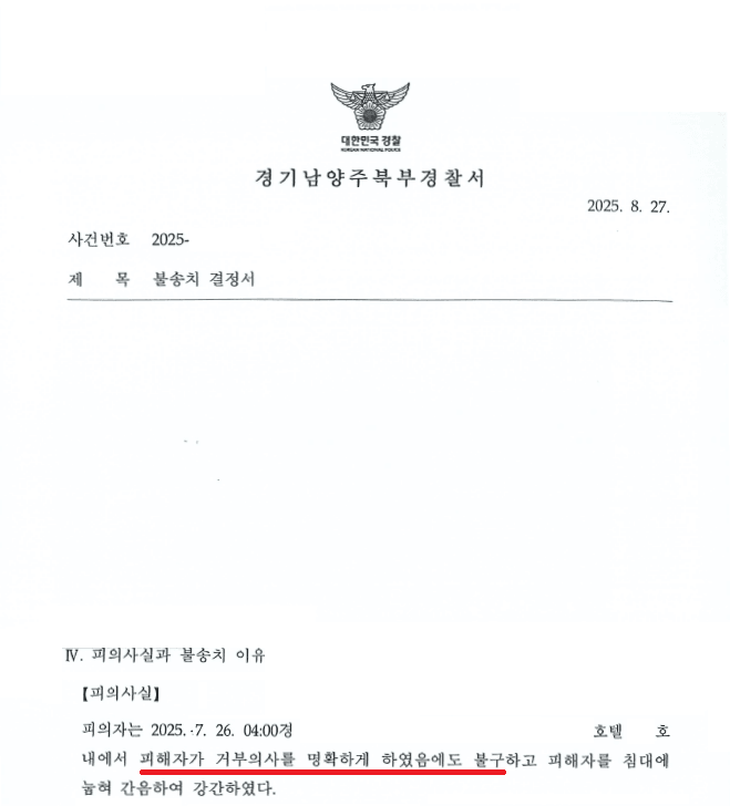 ⑥ 경찰 조사를 받은 후 "A씨가 B씨와 성관계를 하면서 B씨에게 폭언, 폭행 등을 하며 강압적인 태도를 보인 것은 맞다. 그러나 이는 모두 B씨의 SM 성향에 따라 B씨가 원해서 그랬던 것으로서 일부 언행이 B씨의 예상 범위를 넘었다고 하더라도 강간이라고 볼 수 없다."라는 내용의 변호인의견서를 작성하여 제출하였습니다.