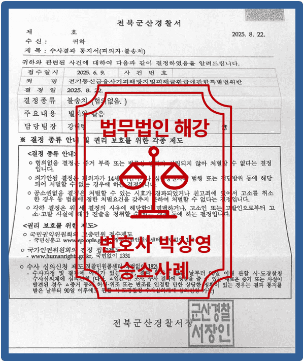 현명한 대처와 전문성을 갖춘 법무법인 해강의 조력으로 저희 법무법인 해강은 의뢰인의 재산보호를 지키고자 하였고 [불송치결정]을 이끌어냈습니다.