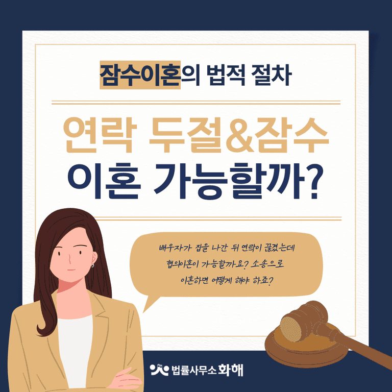 이 사례가 특히 화제가 된 이유는, 이혼이 단순히 부부의 합의로만 가능한 절차가 아님을 보여주기 때문입니다. 일방이 갑자기 연락을 끊어버린 후 상대 배우자가 남겨진 상황이라면, 과연 혼자서도 이혼이 가능할까요? 실제로 이러한 문의가 최근 늘어나고 있으며, 저희 사무실에서도 “배우자가 집을 나간 뒤 연락이 끊겼는데 협의이혼이 가능한지” 혹은 “소송으로 이혼하려면 어떻게 해야 하는지” 상담이 늘고 있습니다. 이번 글에서는 ‘잠수이혼’이 법적으로 가능한지, 그리고 실제 절차는 어떻게 진행되는지를 차근차근 짚어보겠습니다.