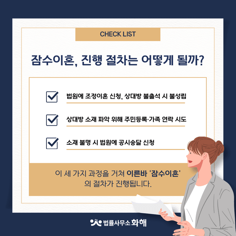 무엇보다 혼자서 모든 것을 해결하려고 하지 마시고 초기 단계부터 이혼 전문 변호사와 상담받으시길 권합니다. 잠수이혼은 절차가 복잡하고 놓치기 쉬운 부분들이 많기 때문에 전문가의 도움 없이는 시간과 비용만 낭비할 수 있습니다.