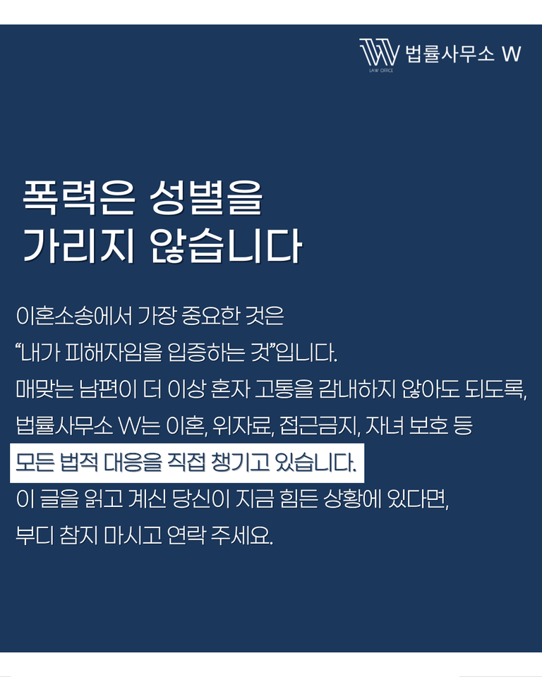 “이 정도는 그냥 참아야 하는 거 아닐까?” 이런 생각은 가해자의 프레임일 수 있습니다. 정상적인 관계에서 ‘참아야 하는 폭력’은 없습니다. 남편도 피해자일 수 있고, 법은 그 피해를 충분히 보호할 수 있습니다.