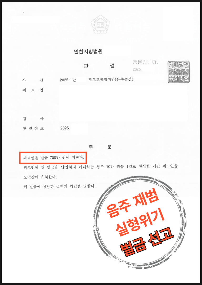 1. 실제 사례: 음주운전 10년 내 재범 + 혈중알코올농도 수치 높음