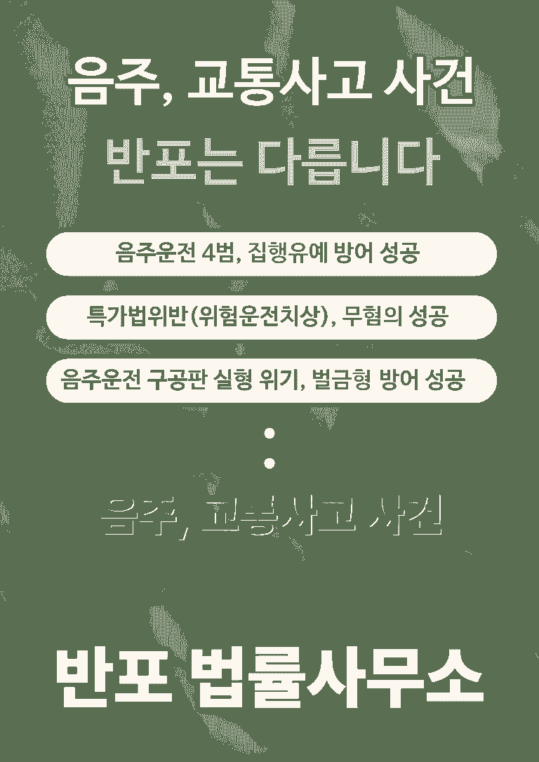 음주운전으로 재판을 앞두고 있는 상황이라면, 지금 바로 음주운전 사건 전문 반포 법률사무소의 조력을 받아보세요.