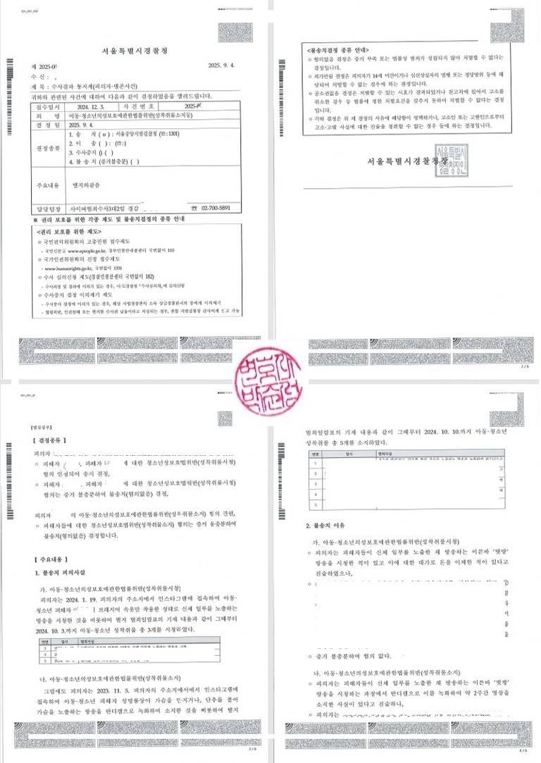 이 사건은 아청법 피해자들이 여러 명이었던지라 그들에 대한 조사까지 합해진다면 수사기간이 꽤 장기간 늘어질 수 있을 것이라 예상했는데 첫 조사가 이루어진지 6개월 정도만에 경찰단계 결정이 있어 다행이었습니다.