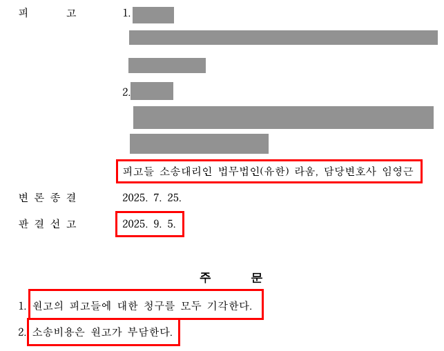 # 초기 검토 예상대로 상대방 청구는 전부 기각판결이 선고됨