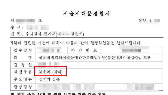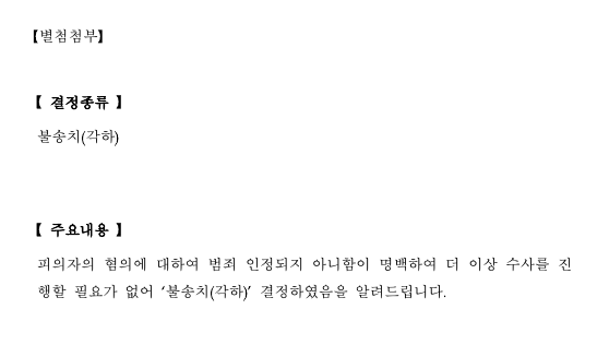 그 결과, 사건은 불송치(각하)로 종결되었으며,