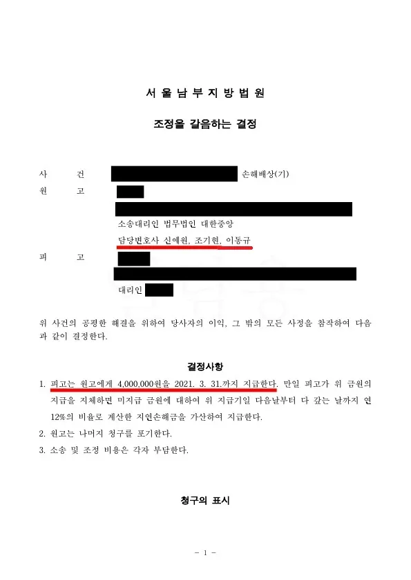 재판부은 이동규 변호사의 주장을 받아들여 의뢰인은 피고에게 손해배상받을 수 있게 되었습니다.
