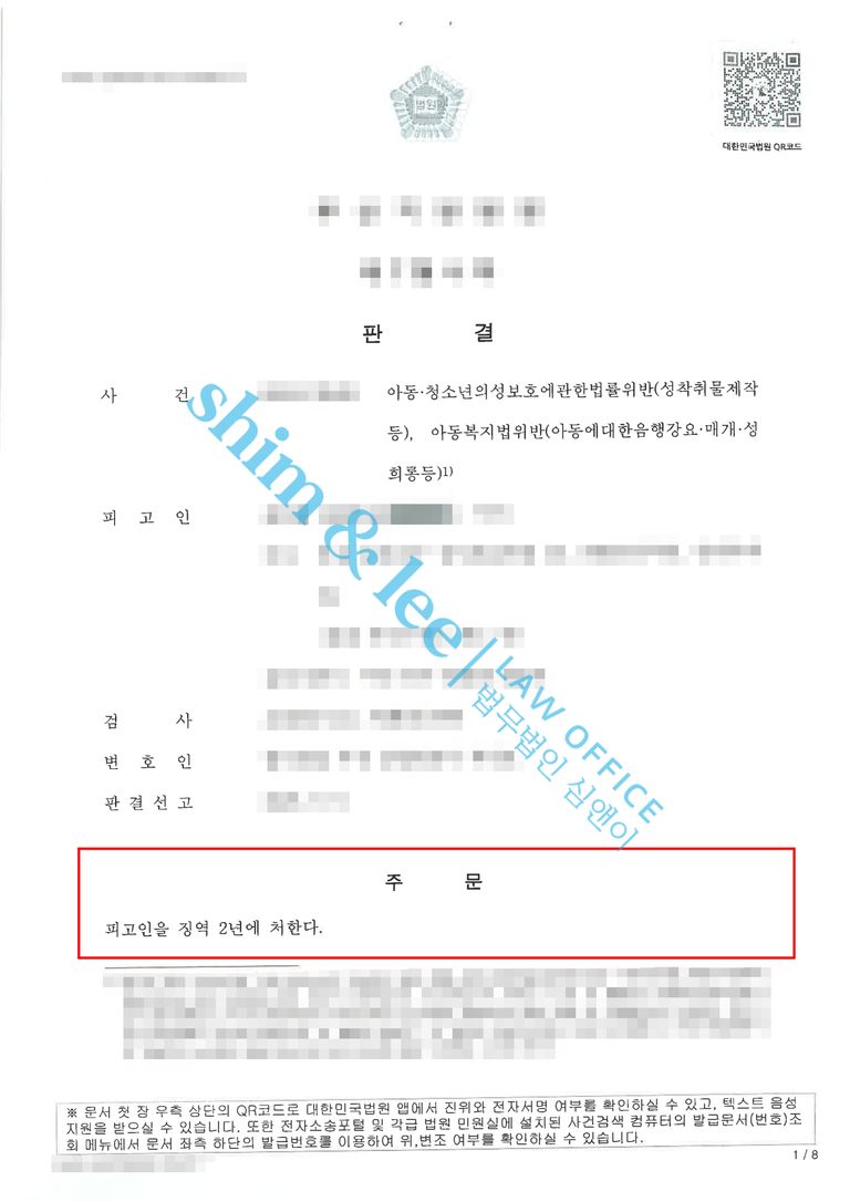 - 심앤이는 의뢰인과 부모님이 작성한 엄벌 탄원서와 이 사건으로 수년간 이어진 정신과 진료 내역을 추가 자료로 첨부하여 어린 시절 성착취를 당하며 겪은 수치심과 깊은 정신적 고통이 보다 잘 드러날 수 있도록 의견서를 작성하였습니다. 그리고 가해자는 범행을 저지르고도 해외에서 도피 생활을 하며 처벌을 피해 온 점을 지적하며 엄중한 처벌을 내려 달라고 강력히 요청하였습니다.