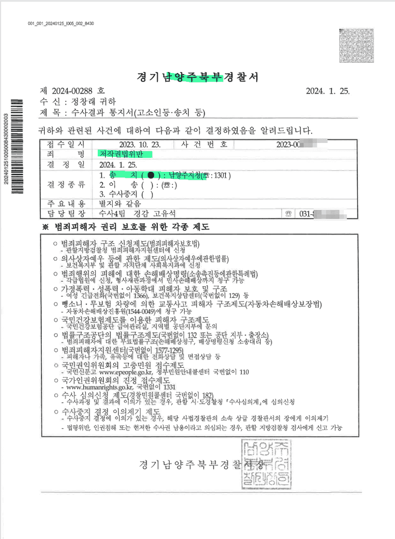 컨텐츠 제작 전문회사의 저작물 무단도용건에 대하여 저작권 위반 고소하여 기소결정 이른 사례