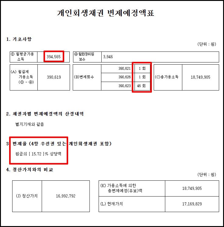 결과적으로 원금의 15.72%만 상환하고도 개시결정을 받은 사례입니다.