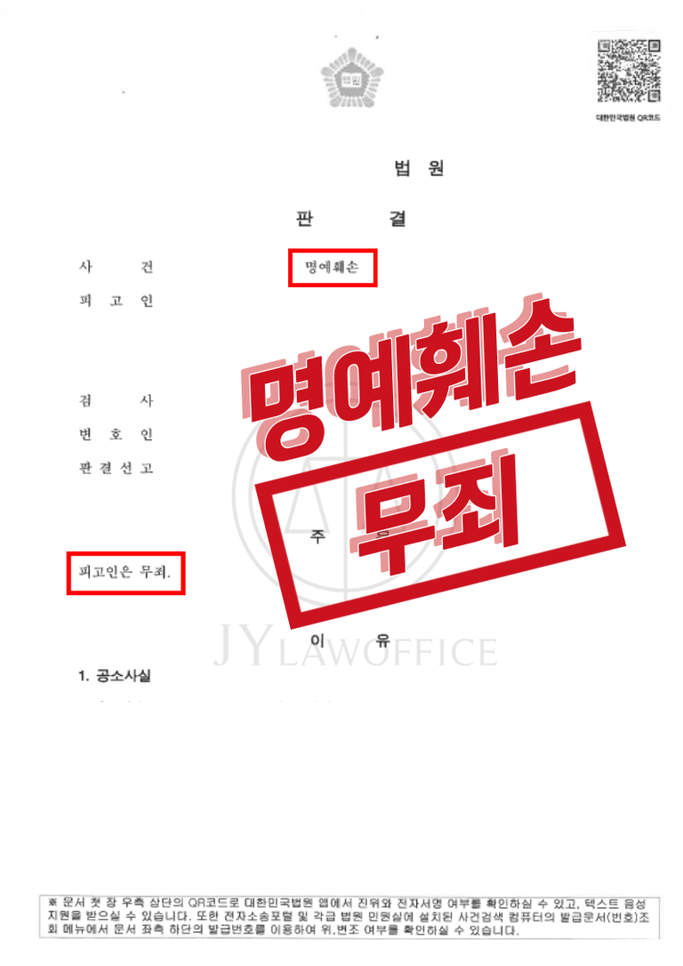 [성공사례] 명예훼손 - 무죄