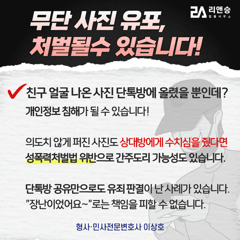 사진 무단 유포는 단순한 장난이나 실수가 아닌 중대한 법적 문제입니다.