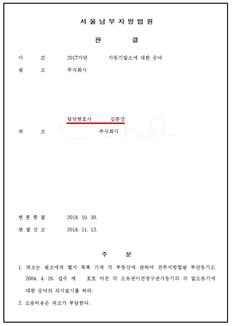 [가등기 말소에 대한 승낙을 구하는 소송] : 김준성 변호사의 도움으로 승소