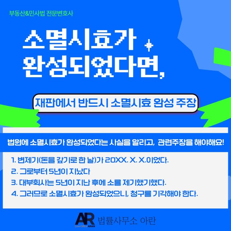 소멸시효가 완성되었다면, 재판에서 반드시 소멸시효 완성 주장을 해야 합니다.