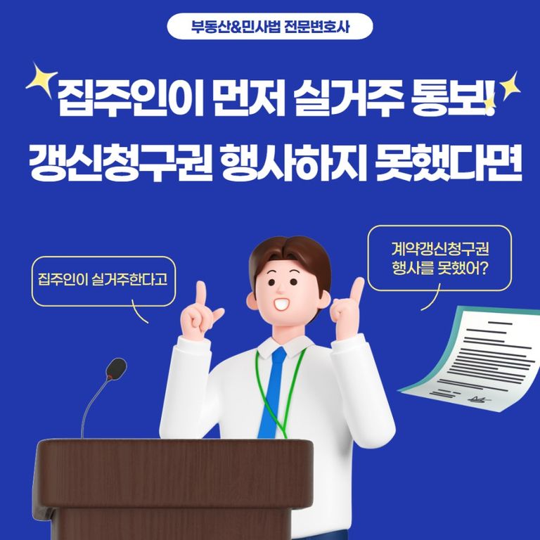 따라서 임대인이 먼저 실거주하겠다고 통보를 해 와서 미처 계약갱신청구권을 행사하지 못했더라도, 세입자는 좌절할 필요가 없습니다.