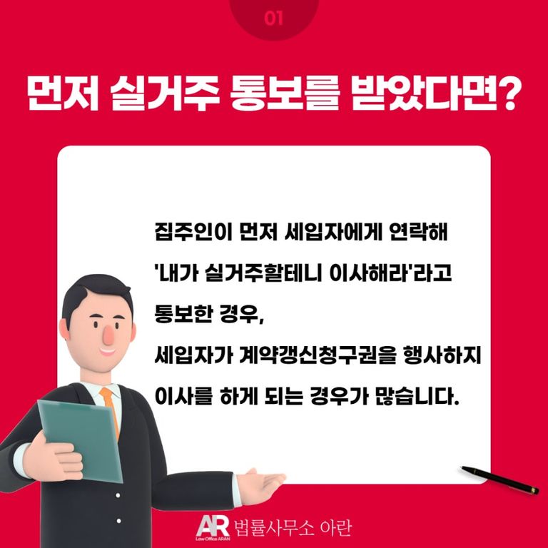집주인이 먼저 실거주 통보를 하게 되면, 세입자가 갱신청구를 하기가 애매해 집니다.