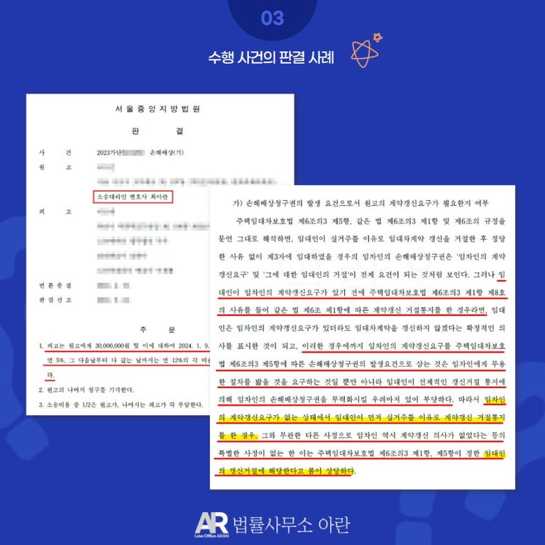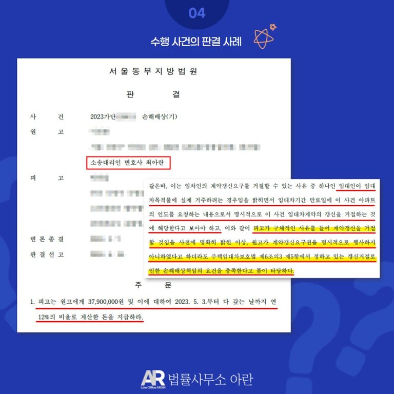 계약갱신청구권 거부, 세입자 손해배상청구 실제 사례 | 로톡