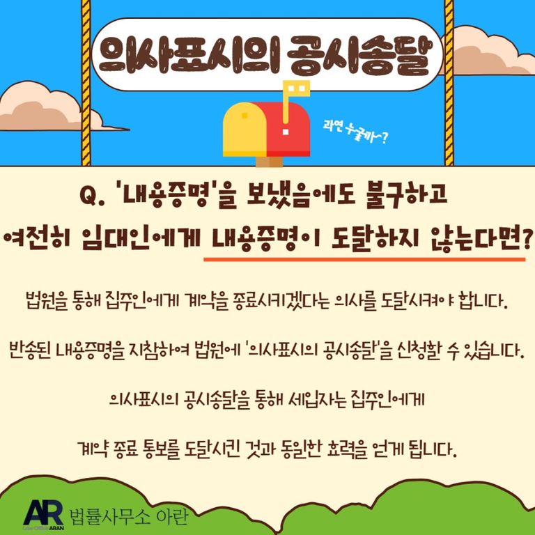 위의 과정을 거쳐 다시 내용증명을 보냈음에도 불구하고 여전히 임대인에게 내용증명이 도달하지 않는다면, 세입자는 이제 더 이상 내용증명으로는 집주인에게 연락을 취할 방법이 없습니다.