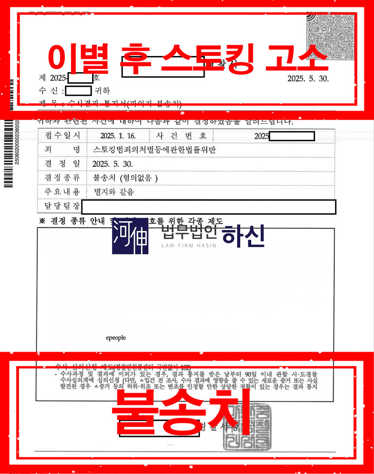통상 스토킹 고소 사건은 1~2회의 간단한 조사 후 곧바로 검찰에 송치되는 경우가 대부분입니다. 특히 잠정조치가 내려진 사건은 처벌 가능성이 높아지는 경향이 있습니다.