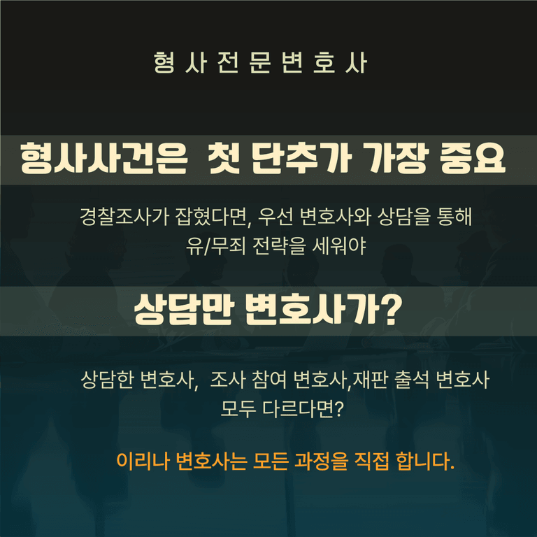 따라서 경찰 조사 초기부터 변호사와 함께 대응하는 것이 무엇보다 중요합니다.