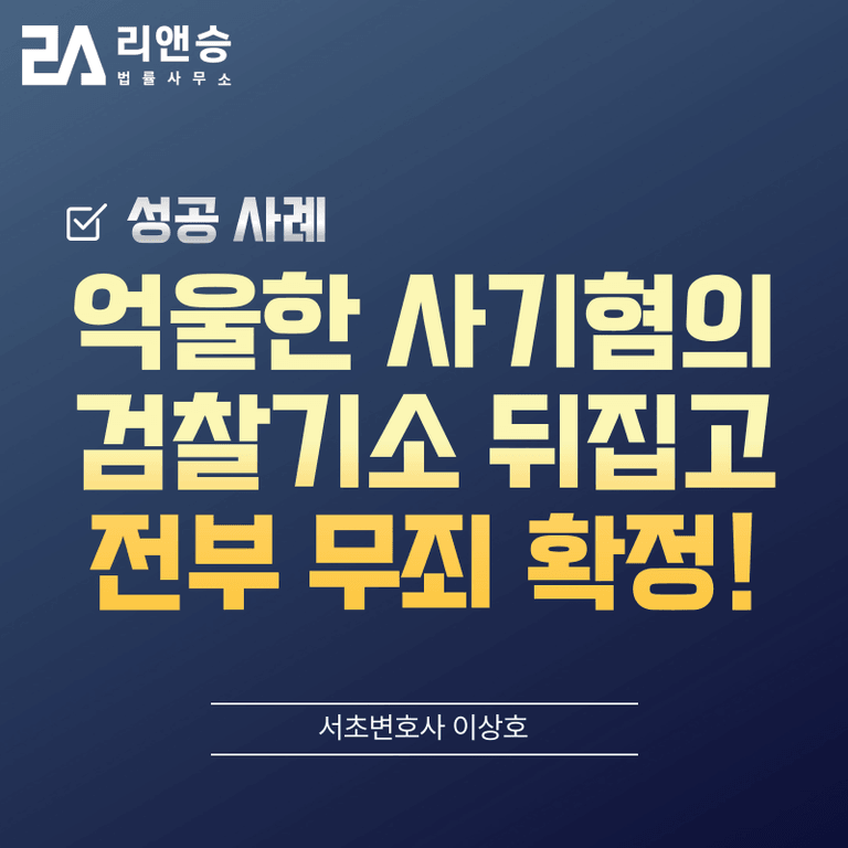 ![[성공사례] 사기혐의 검찰기소 뒤집고 전부 무죄 확정!](/_next/image?url=https%3A%2F%2Fd2ai3ajp99ywjy.cloudfront.net%2Fuploads%2Ftitleimage%2Foriginal%2F5b166d012320ecd6d3050a16-original.jpg&w=3840&q=75)