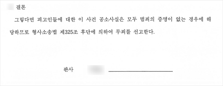 재판부는 변호인의 주장을 모두 받아들여, 피고인들에게 무죄를 선고했습니다.