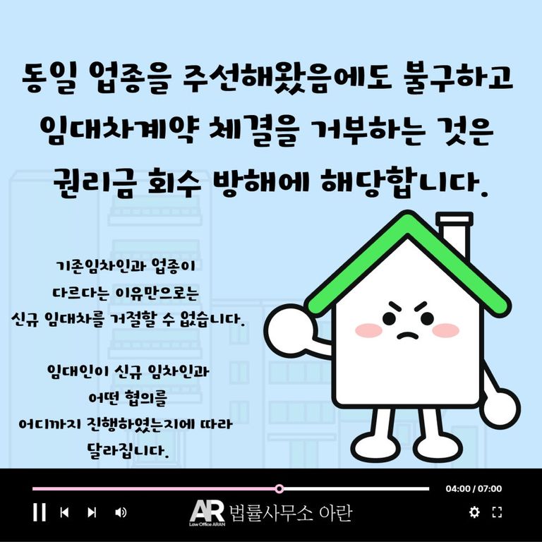 이때 임대인이 업종이 달라진다는 이유를 들어 신규 임차인과의 임대차계약 체결을 거부할 수 있을까요?