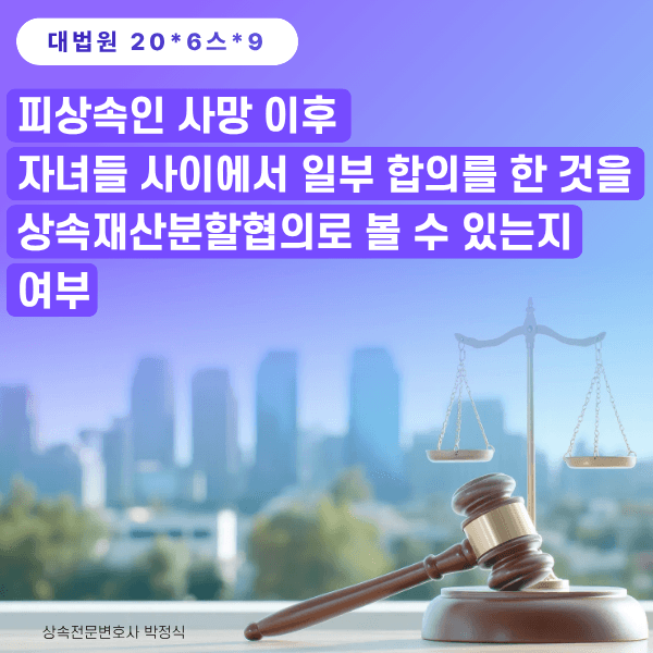 ① 피상속인 사망 이후에 일부 자녀들 사이에서 민사소송을 통하여 판결을 받은 이후 소외 합의를 통하여 부동산의 소유권을 정리한 경우, 해당 부동산에 대한 합의에 상속인들 전원이 참여한 것이 아니라는 이유로 이를 피상속인의 상속재산에 대한 상속재산분할협의로 인정하지 않았습니다.