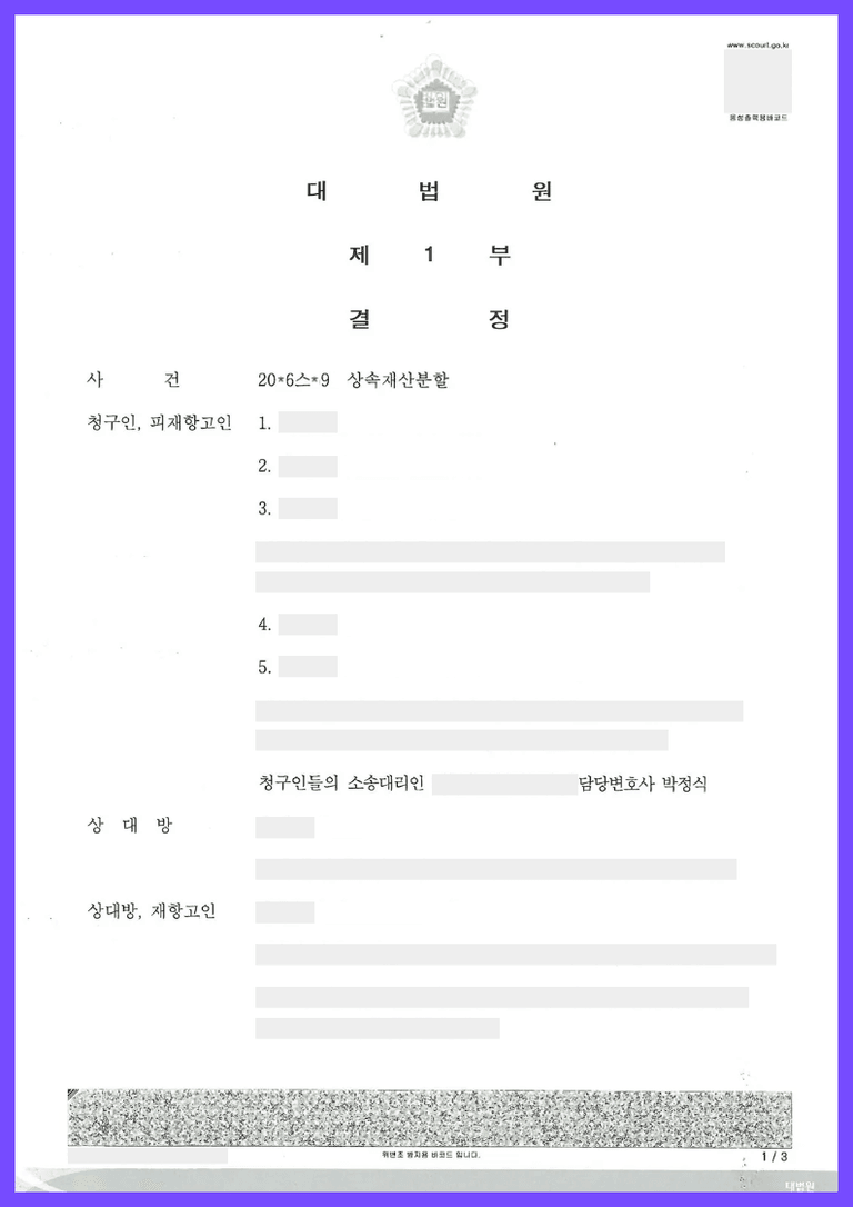 안녕하세요, 상속전문변호사 박정식입니다.