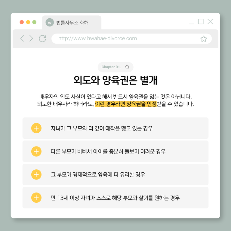 외도와 양육권은 별개의 문제