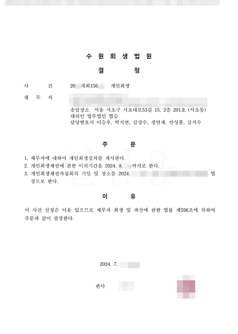 이에 의뢰인은 이러한 상황을 감당할 수 없다고 판단하고 법무법인 법승 회생팀에 사건을 의뢰하였습니다.
