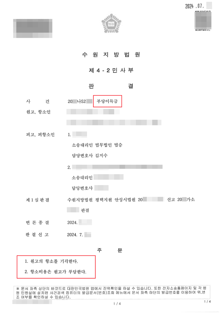 1심 법원은 원고의 청구를 전부 기각하였고, 원고가 그에 대해 항소하였으나 항소심 법원 역시 원고의 항소를 기각하였습니다.