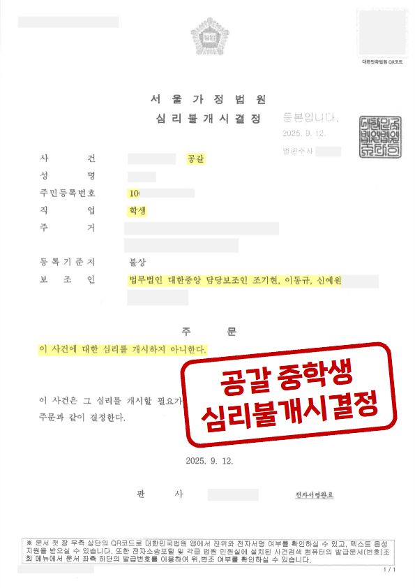 ![[🔹소년] 공갈 중학생 심리불개시결정 성공사례](/_next/image?url=https%3A%2F%2Fd2ai3ajp99ywjy.cloudfront.net%2Fuploads%2Ftitleimage%2Foriginal%2F5baca43735be538753b936b9-original.jpg&w=3840&q=75)