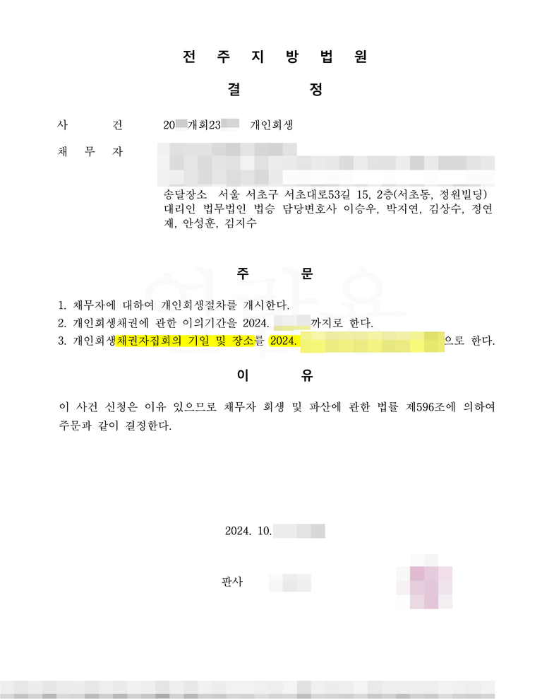 결국 모든 경제활동을 포기하고 엉망으로 지내다 총 채무가 약 3,100만 원에 이르게 되었습니다. 지금의 아이 아빠를 만나 삶의 희망을 찾았고, 돌도 되지 않은 아이를 지켜야 하기에 법무법인 법승 회생팀에 사건을 의뢰하였습니다.