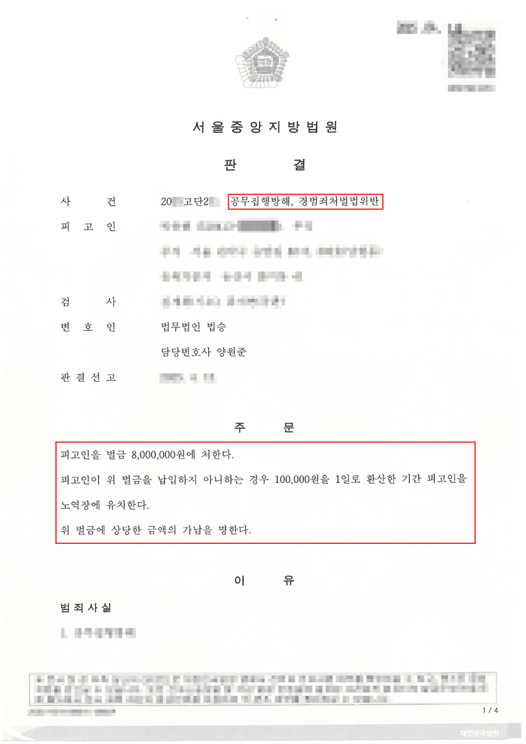 법원은 저희의 변론을 받아들여 의뢰인에게 벌금형을 선고하였습니다. 본 사건의 결과로 의뢰인은 구속이나 실형 없이 일상생활로 복귀할 수 있게 되었으며, 직장 생활도 계속 유지할 수 있게 되었습니다. 의뢰인의 사회적, 경제적 피해를 최소화하는 결과를 얻을 수 있었습니다.