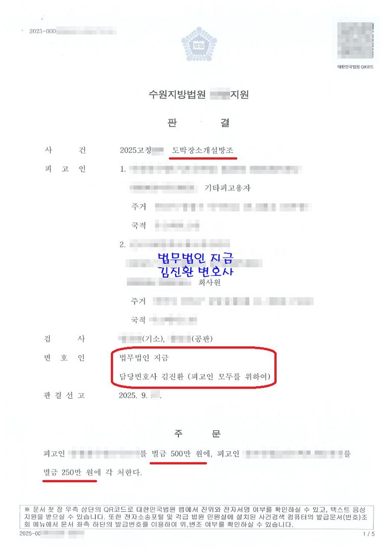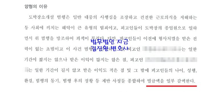 정식재판 과정에서 피고인들이 게임장에서 종업원으로 일을 하며 받은 급여가 적은 편인 점, 한국에 입국한지 오래 되지 않은 외국인으로 국내 사법시스템을 잘 몰라 도박장에서 종업원으로 일을 하게 된 점, 가족족으로 배우자와 자녀가 있고 그들이 한국에 거주하고 있어 피고인들만 고국으로 추방될 경우 가족들과 떨어져 살 수밖에 없는 점 등을 소명하며 벌금액을 조금이라도 줄여주실 것을 요청드렸습니다.