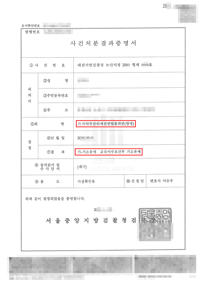 무엇보다 본 사건은 마약류 사건에서도 희망이 있음을 보여줍니다. 적절한 법률적 조력과 의뢰인의 진정한 반성이 결합될 때, 인생을 망칠 수 있는 전과 기록 없이 새로운 기회를 얻을 수 있음을 확인한 의미 있는 사례입니다.