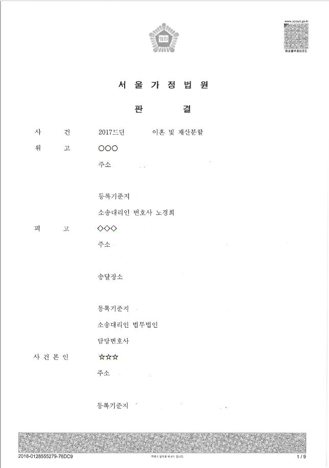 의뢰인은 배우자의 폭력, 폭언 등 가정폭력을 원인으로 노경희 변호사에게 이혼소송을 의뢰하였습니다.