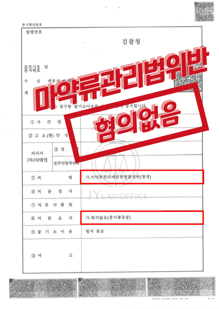 [성공사례] 마약류관리법 위반 - 혐의 없음