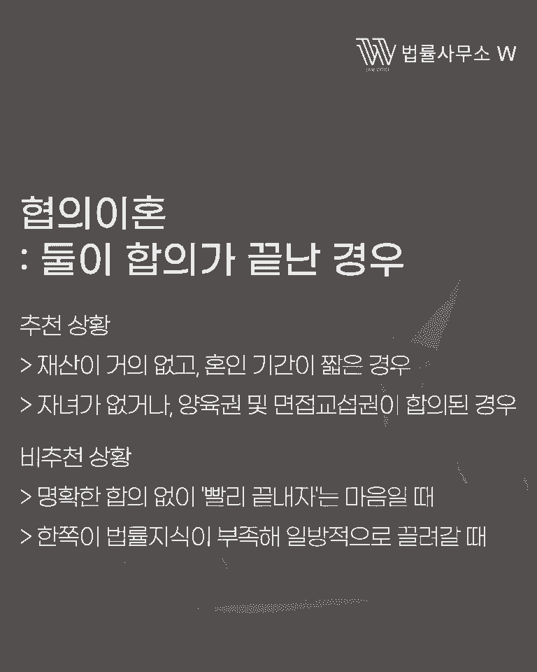 간단해 보여 협의이혼으로 시작했다가, 불리한 조건에 동의해버려 뒤늦게 후회하는 경우를 자주 봅니다.