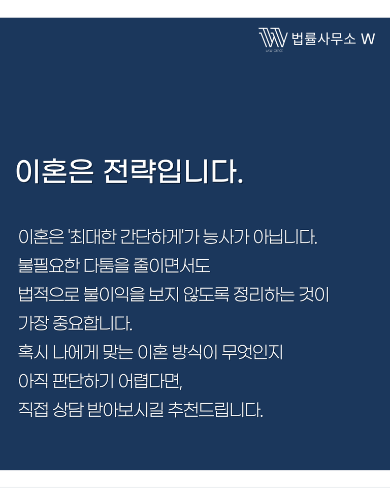 절차를 알지 못해 억울한 결과를 받는 일도 있습니다. 따라서 이혼을 고민 중이라면, 먼저 자신에게 맞는 방향을 설정하는 것이 핵심입니다.