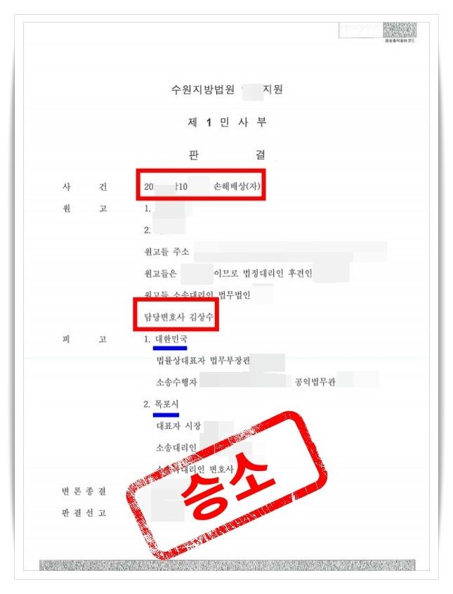이에 유족은 법무법인을 통해 국가와 지방자치단체(목포시)를 상대로 손해배상 소송을 제기하게 되었습니다.