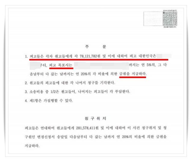 따라서 국가와 지자체 모두 일정 부분 손해배상 책임을 부담해야 한다고 보았습니다. 그 결과, 유족들은 각 7,800만 원씩 손해배상금을 지급받을 수 있었습니다.