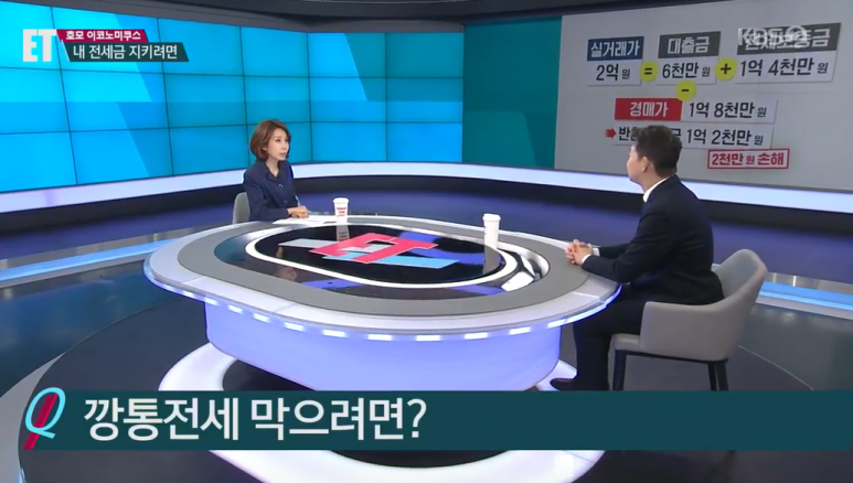 A: 그렇습니다. 이게 지금 현재 비슷한 상황입니다. 이런 경우에 문제가 발생할 수 있는데요. 왜 그러냐면 매매가가 여기서 좀 떨어진다, 이런 경우에는 집주인이 집을 팔아도 세입자에게 전세금을 돌려주지 못하는 상황이 올 수 있습니다. 집주인이 만약 여기에 대출을 끼고 있다, 이런 경우에도 나중에 전세금을 다 못 돌려 받는 경우가 생길 수 있습니다.