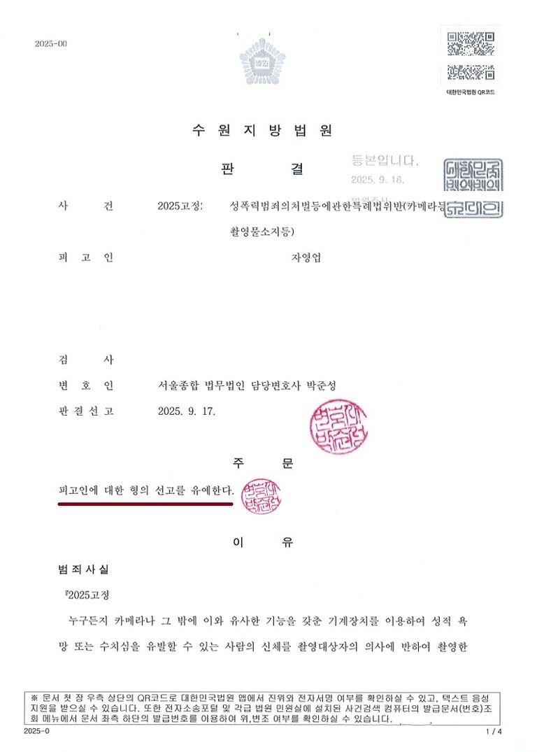 정식재판청구로 열리는 사건번호 '고정'사건인지라 선고기일에 피고인 출석 필요가 없었기에 판결문을 확보하기까지 며칠 걸렸습니다.