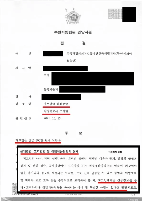 ![[🚨형사]성범죄 미성년자 통매음 벌금형, 신상공개 취업제한면제](/_next/image?url=https%3A%2F%2Fd2ai3ajp99ywjy.cloudfront.net%2Fuploads%2Ftitleimage%2Foriginal%2F5b5847e4a5bcee76f911d78a-original.jpg&w=3840&q=75)