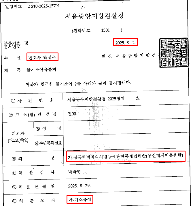 [박성욱 변호사'의 통매음 관련 '혐의없음'